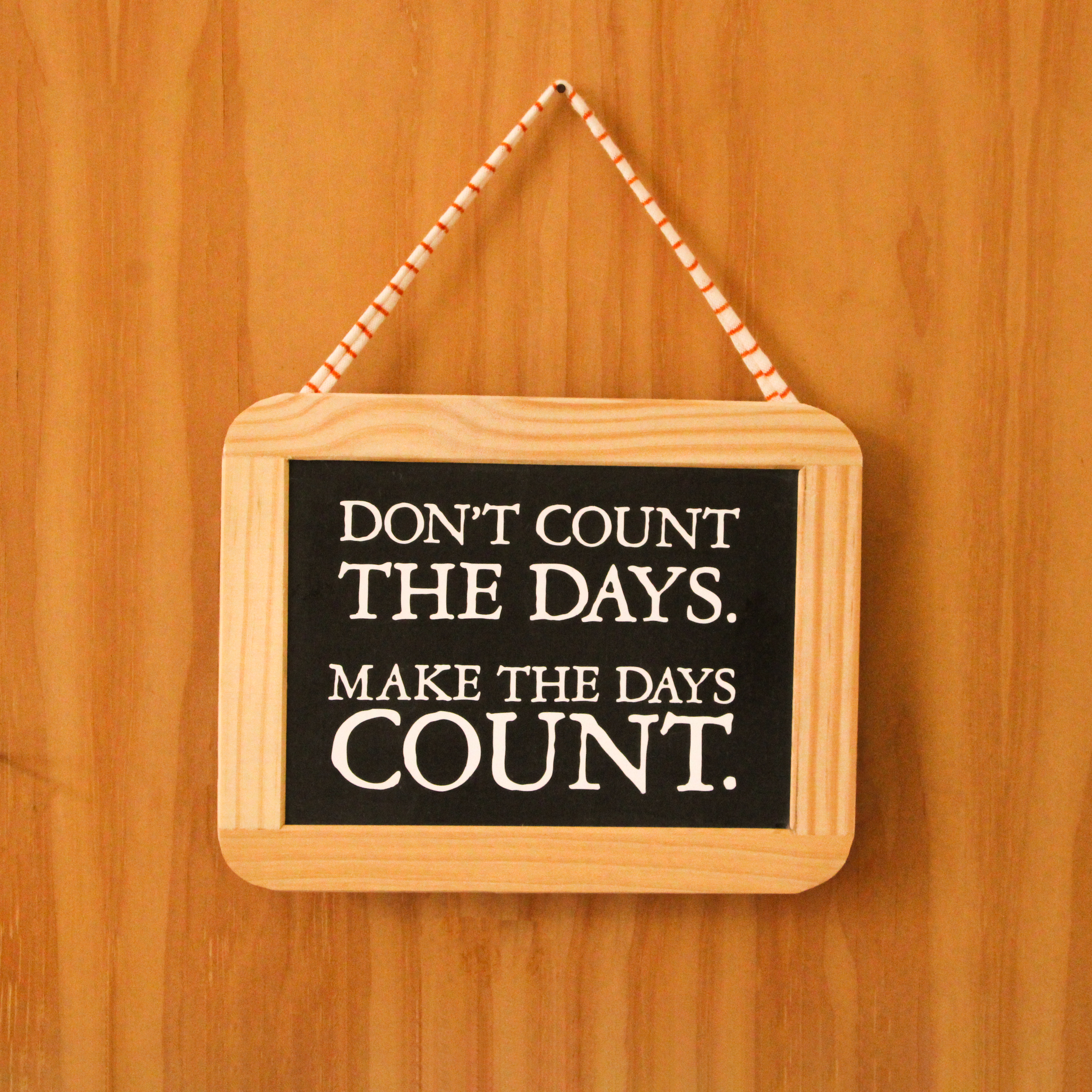 Ardósia personalizada com frase: “Don’t count the days. Make the days count.”
